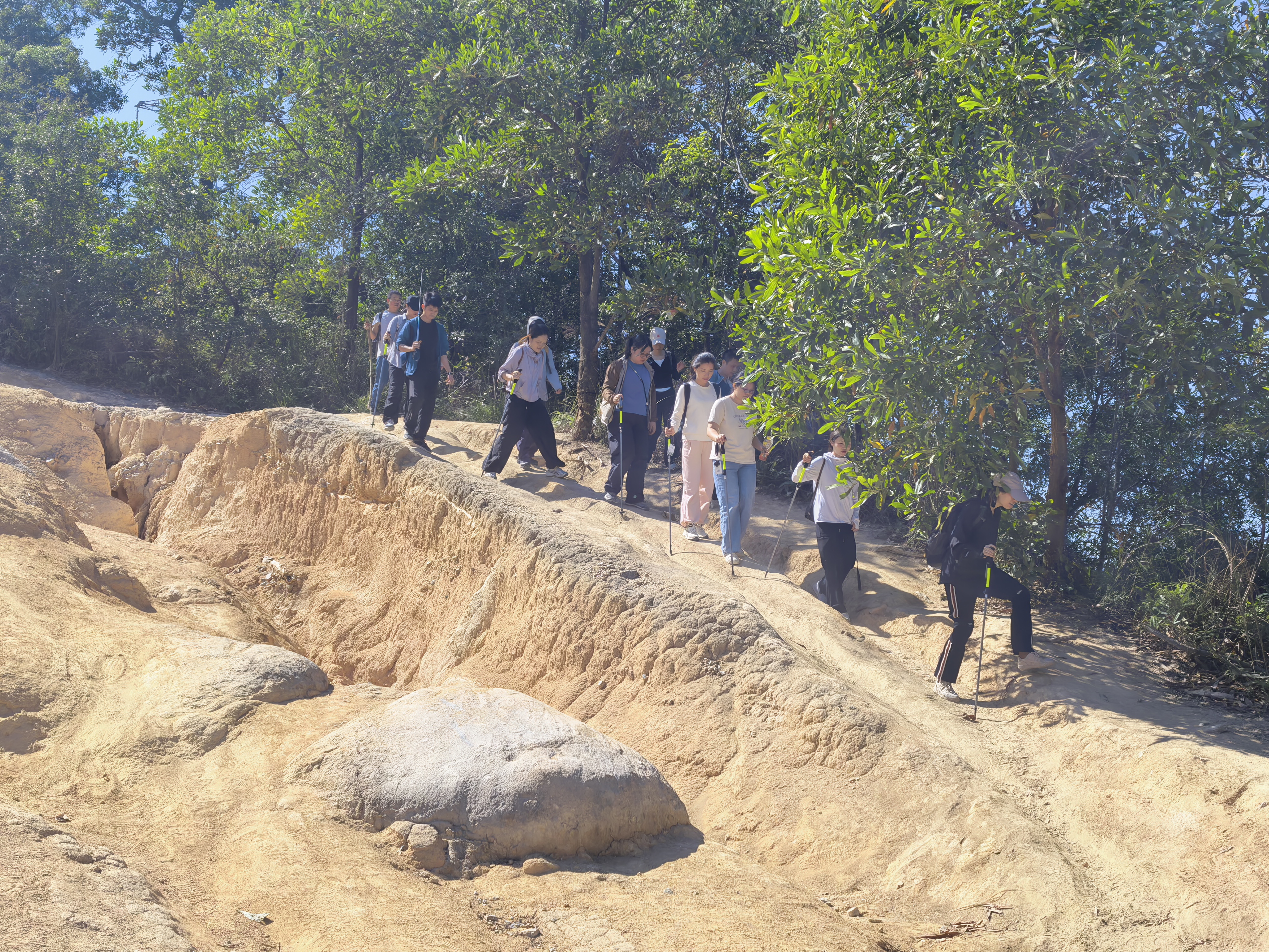 团队的身影穿梭于绿意之间