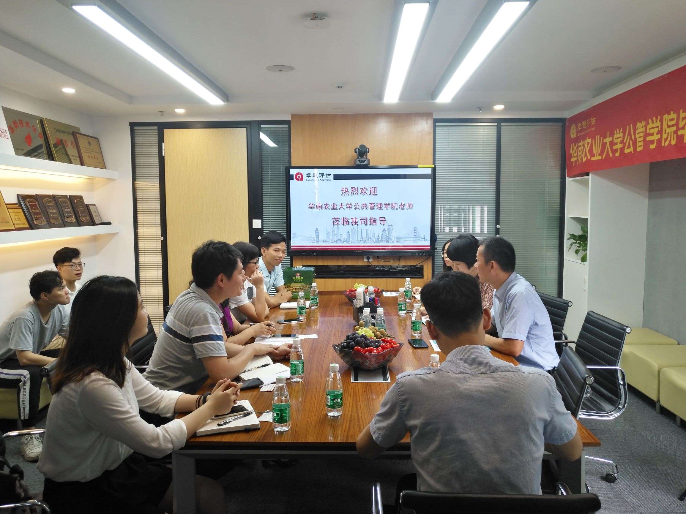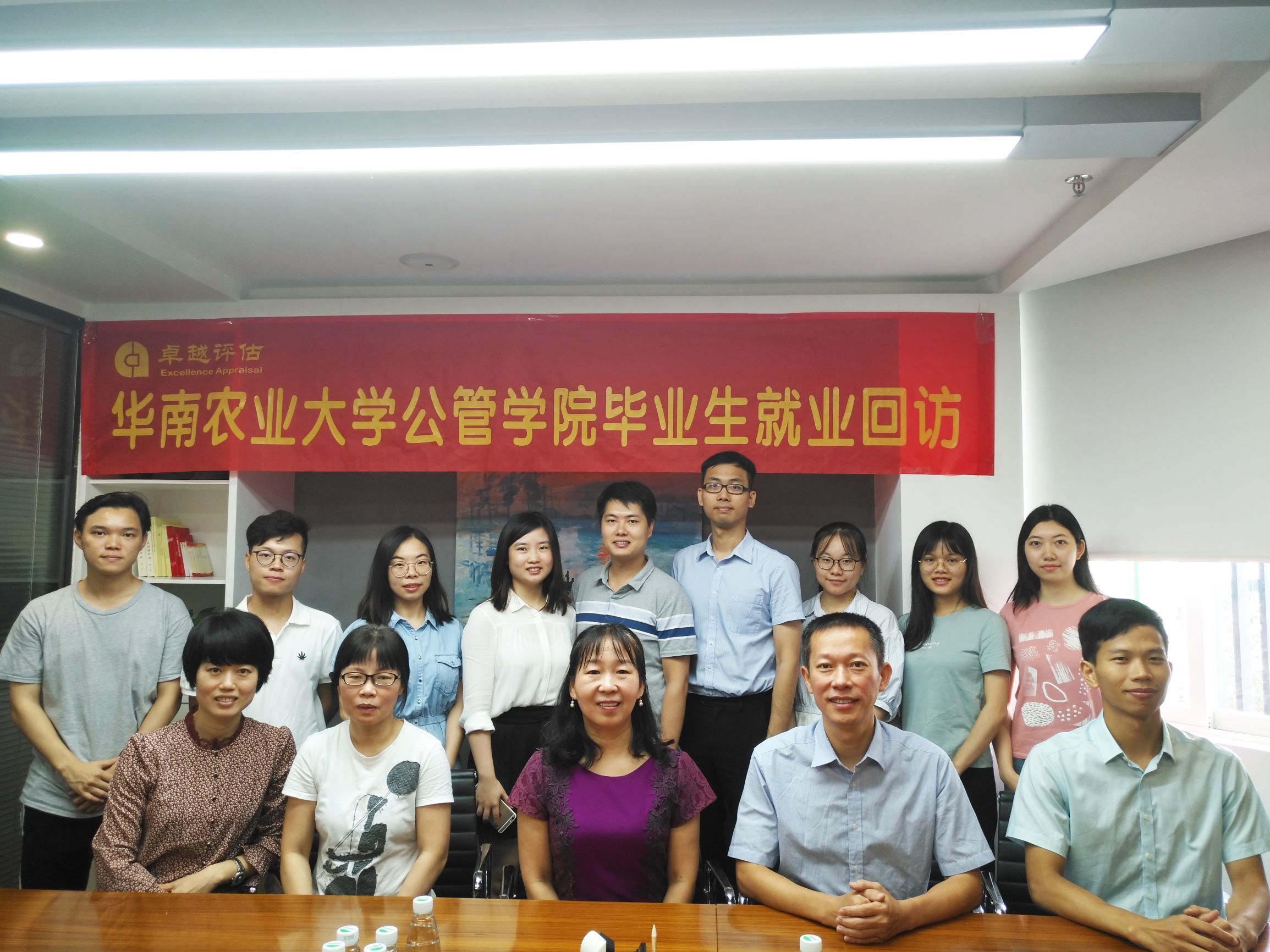 7月23日上午,华南农业大学公管学院行政副院长王茹、公管学院土地资源管理系副主任游珍、公管学院土地资源管理系教师刘光盛、公管学院负责就业工作辅导员余祥、张兹欣等校领导来。我司进行2019年度毕业生就业回访,我司常务副总经理方锐泉、总经理助理欧翠玉以及华农优秀毕业校友等人进行了接待。