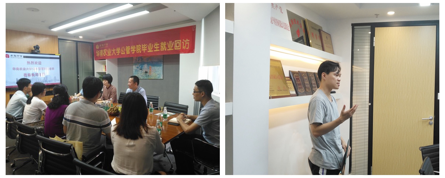 本次回访了5名在我司就业的2019届华农大毕业生,5位同学在发言过程中,对比学校活动和企业工作,认为学校活动是理论性的,只有加强实践工作,才能更快成长为对企业有用的人才。