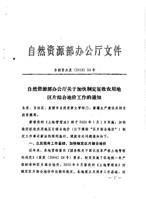 自然资源部印发《制定征收农用地区片综合地价的指导意见》,指导各地切实做好征收农用地区片综合地价制定公布工作。省自然资源厅同月发布《关于开展征收农用地区片综合地价制定工作的通知》,明确要迅速有序开展区片综合地价制定工作。
