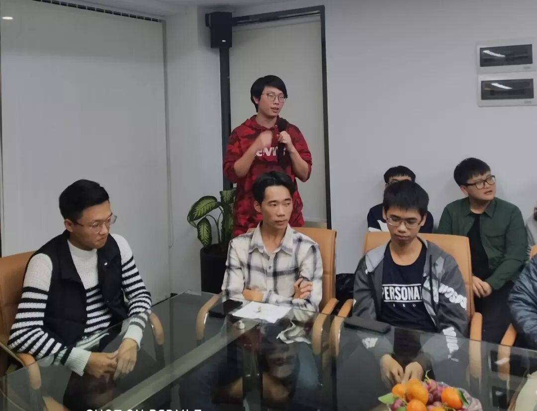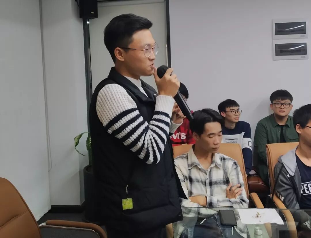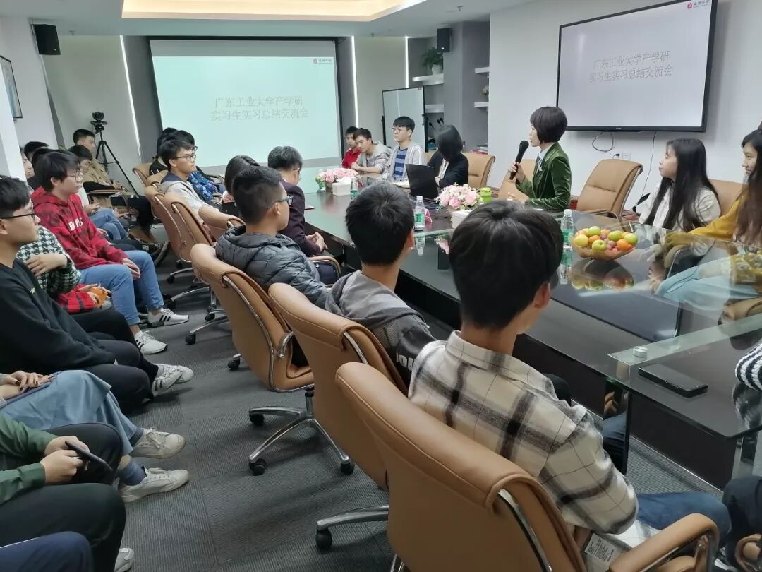 总结交流会上,总经理陈智华做开场发言,通过让实习生一句话的自我介绍,将现场气氛轻松地带动起来,同时对产学研方面发表了见解。