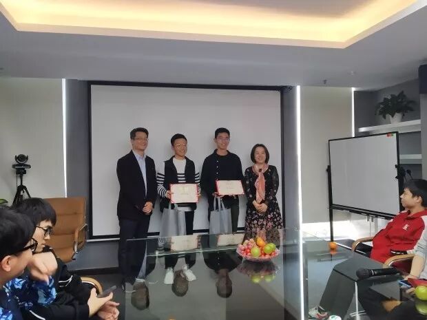最后,总经理陈智华和唐晓莲教授分别为毕业实习中表现优秀的8位实习生颁发了“最具表现奖”和“优秀实习生”荣誉证书和奖品