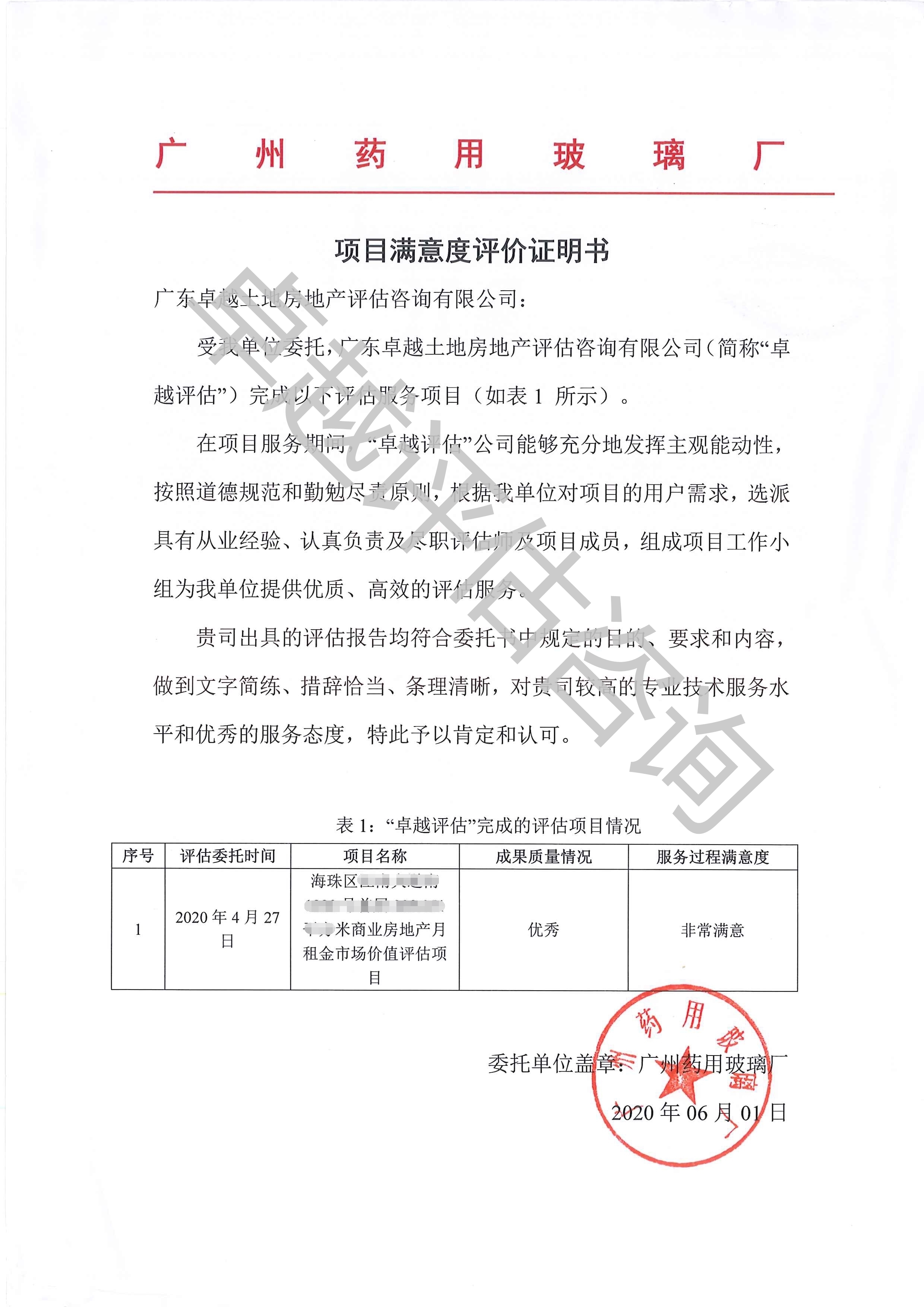 专业赢得肯定。2020年上半年,我们的专业服务水平荣获了广州市南沙区横沥镇土地征收与补偿办公室、广州广垦新街商业管理有限公司、广州药用玻璃厂、广东省南方科技工贸公司、广州广交供应链管理有限公司等客户的肯定和认可。