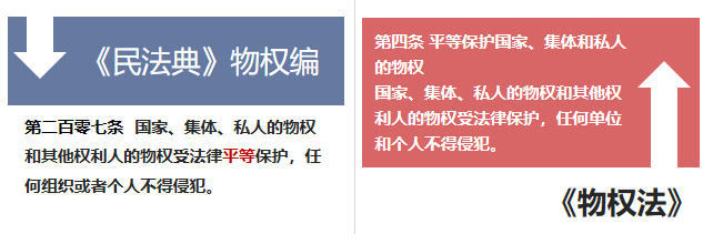 早在2016年中共中央、国务院印发的《关于完善产权保护制度依法保护产权的意见》中,便把平等保护确立为产权保护的首要原则,指出:公有制经济财产权不可侵犯,非公有制经济财产权同样不可侵犯。本次《民法典》物权编第二百零七条在《物权法》第四条的基础上,增加了“平等”二字,体现了物权保护理念的重大转变。同时,在《民法典》总则编第四条中,“平等保护”也作为一项重要的原则:“民事主体在民事活动中的法律地位一律平等”。《民法典》物权编确立的国家、集体和私人的物权受法律平等保护的规定,具有重大的历史意义,也体现了《民法典》的核心价值。