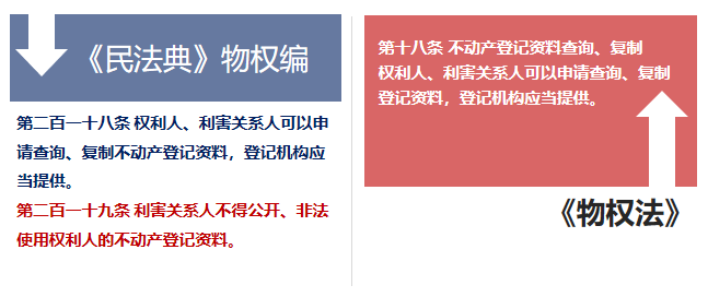 《物权法》赋予权利人、利害关系人查询、复制不动产登记资料的权利,但未对其中的义务进行规定。为防止不动产登记资料被不当利用,《民法典》物权编增设对权利人、利害关系人查询、复制不动产登记资料的义务,实现了权利与义务的统一,也保护了权利人的隐私。