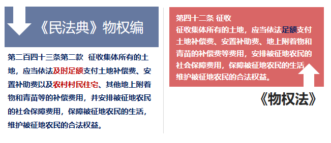 《民法典》衔接新《土地管理法》,完善了被征地农民的补偿制度。在原有的补偿基础上,增加了对村民住宅的补偿费用,且明确“及时足额”支付。同时,在第三百六十一条和三百六十三条明确提出,集体所有的土地作为建设用地、宅基地使用权的取得、行使和转让,需依照土地管理的法律规定。