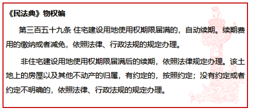 《民法典》明确:住宅建设用地使用权期限届满的,自动续期。这解决了民众普遍关心的住宅建设用地使用权到期如何续期的问题。但续期费用如何缴纳和减免,暂未做出明确的规定,而是授权单行法律和行政法规,在《城市房地产管理法》修改中将会作出进一步明确的规定,届时可予以关注。