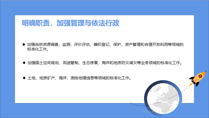 《办法》明确提出,需依据《自然资源部职能配置、内设机构和人员编制规定》(即“三定”方案)中对自然资源部职责规定,加强各领域的标准化工作。