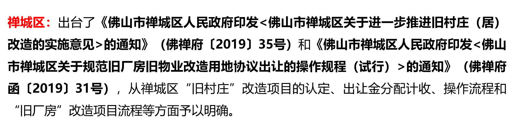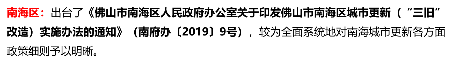 区级城市更新政策方面,自佛山新政27号文出台后,各区结合具体区情出台了相关区级政策和指引。