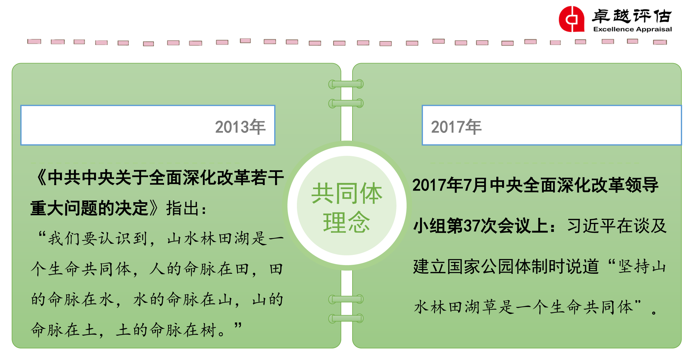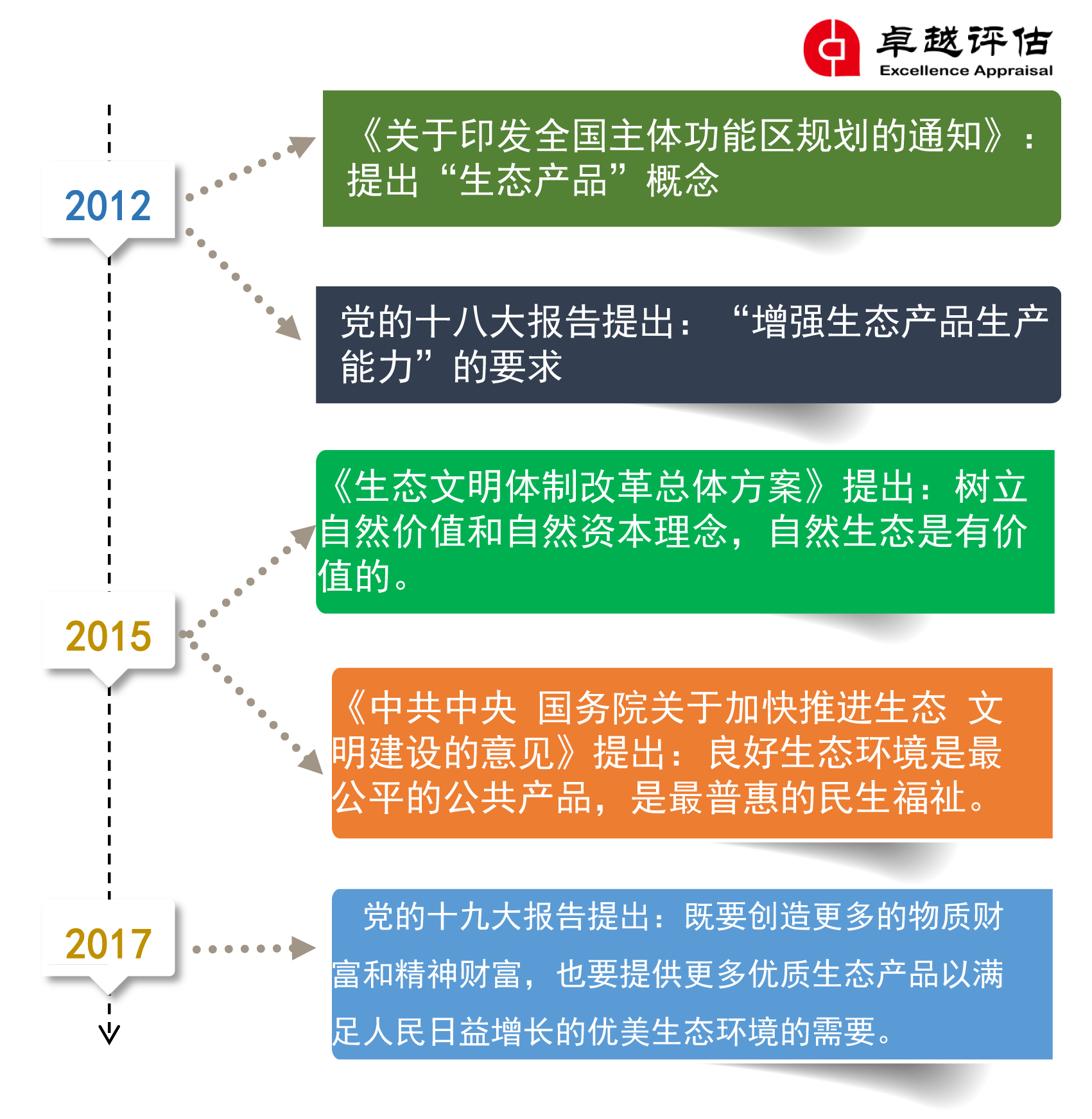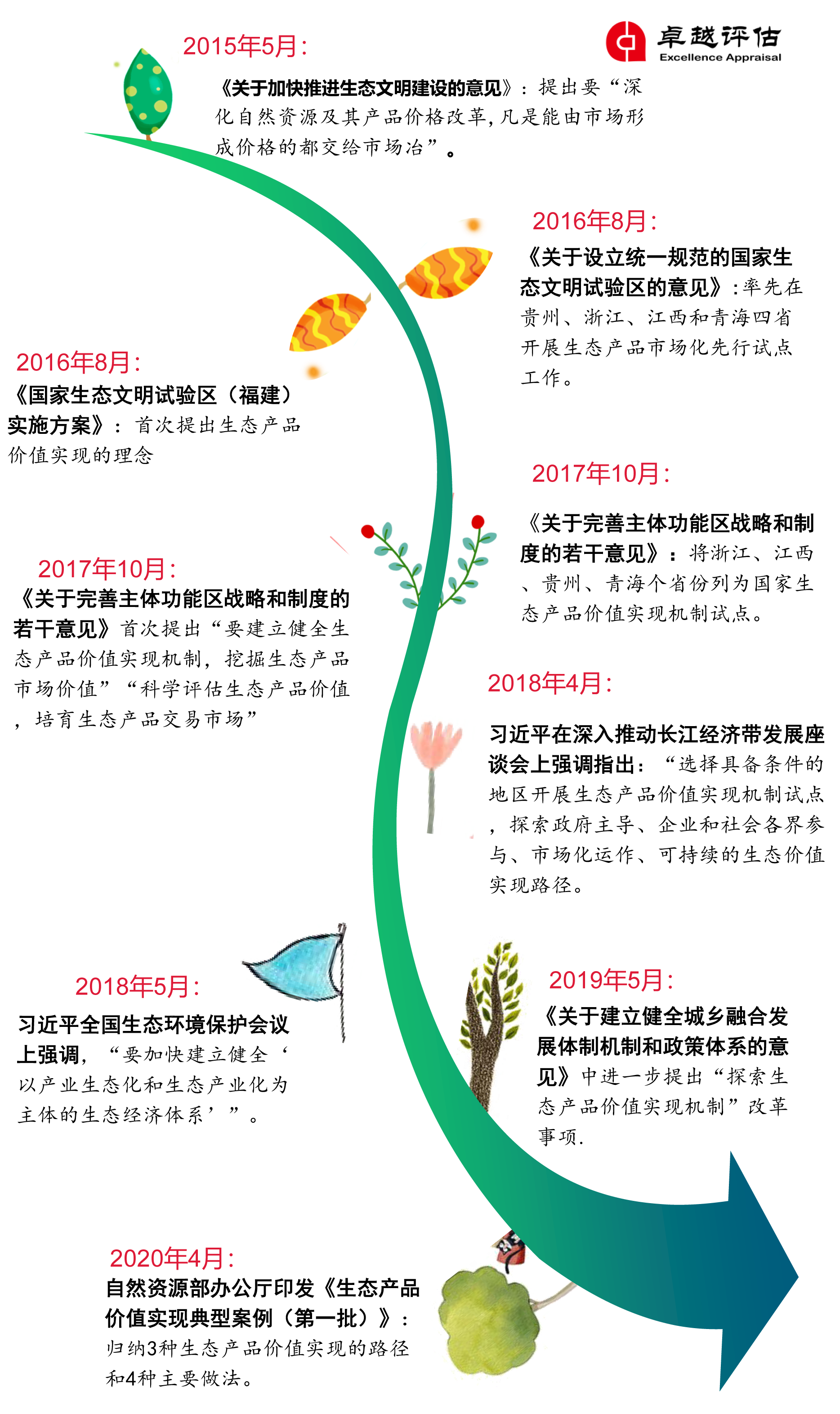 生态产品价值实现机制理念和建设等摸索工作随着我国生态文明建设的深入而逐步深化升华,特别是顶层设计层面越来越完善。《中共中央 国务院关于完善主体功能区战略和制度的若干意见》(中发〔2017〕27号)首次对生态产品价值的实现工作提出了具体要求:“要建立健全生态产品价值实现机制,挖掘生态产品市场价值”、“科学评估生态产品价值,培育生态产品交易市场”。